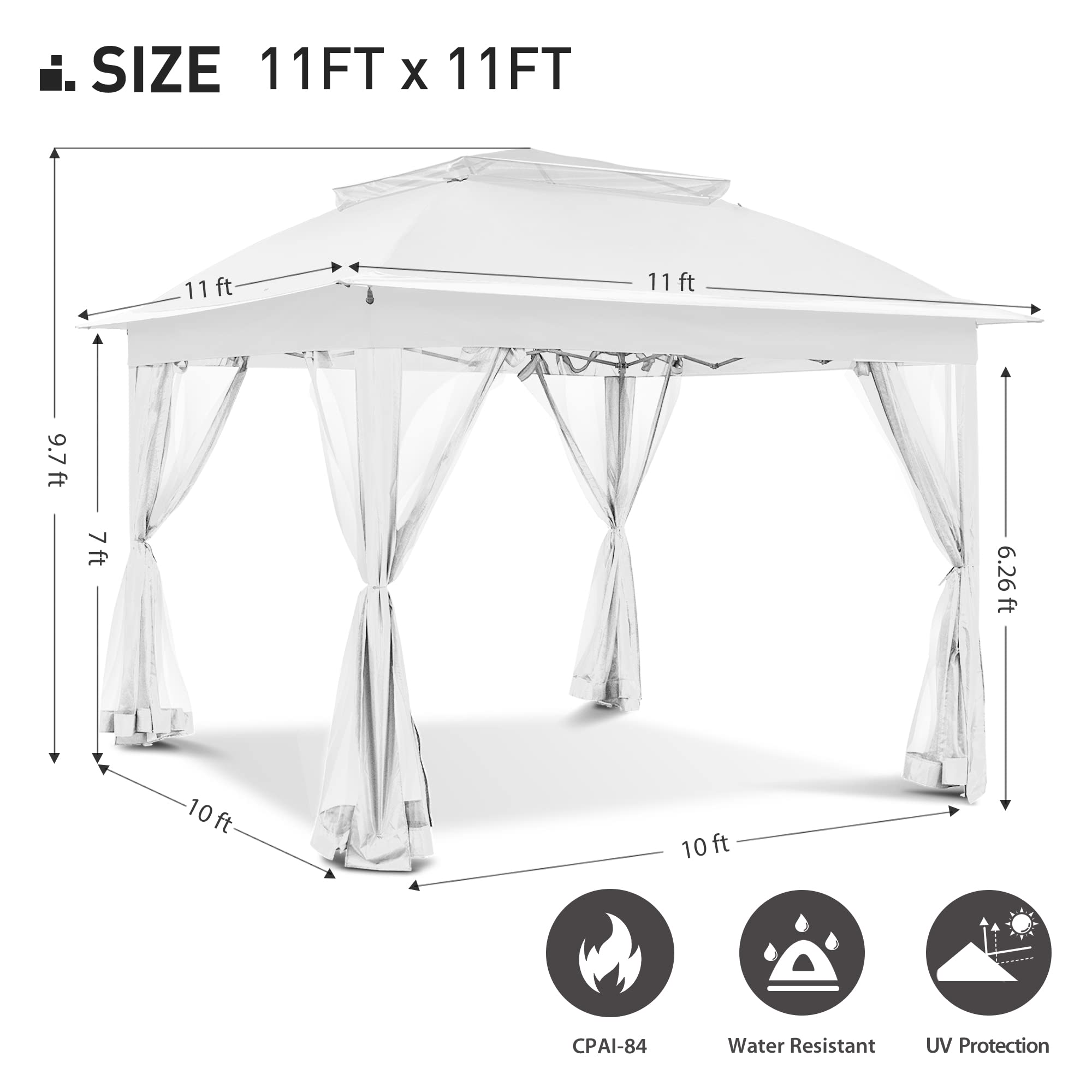 Gardenbee 11'x11' Pop Up Gazebo for Patios Gazebo Canopy Tent