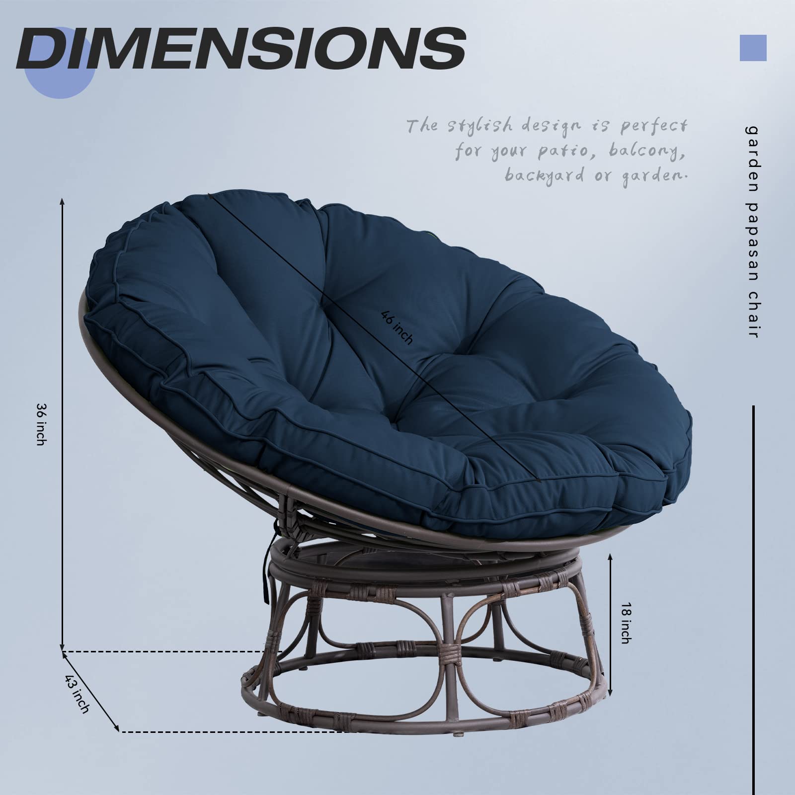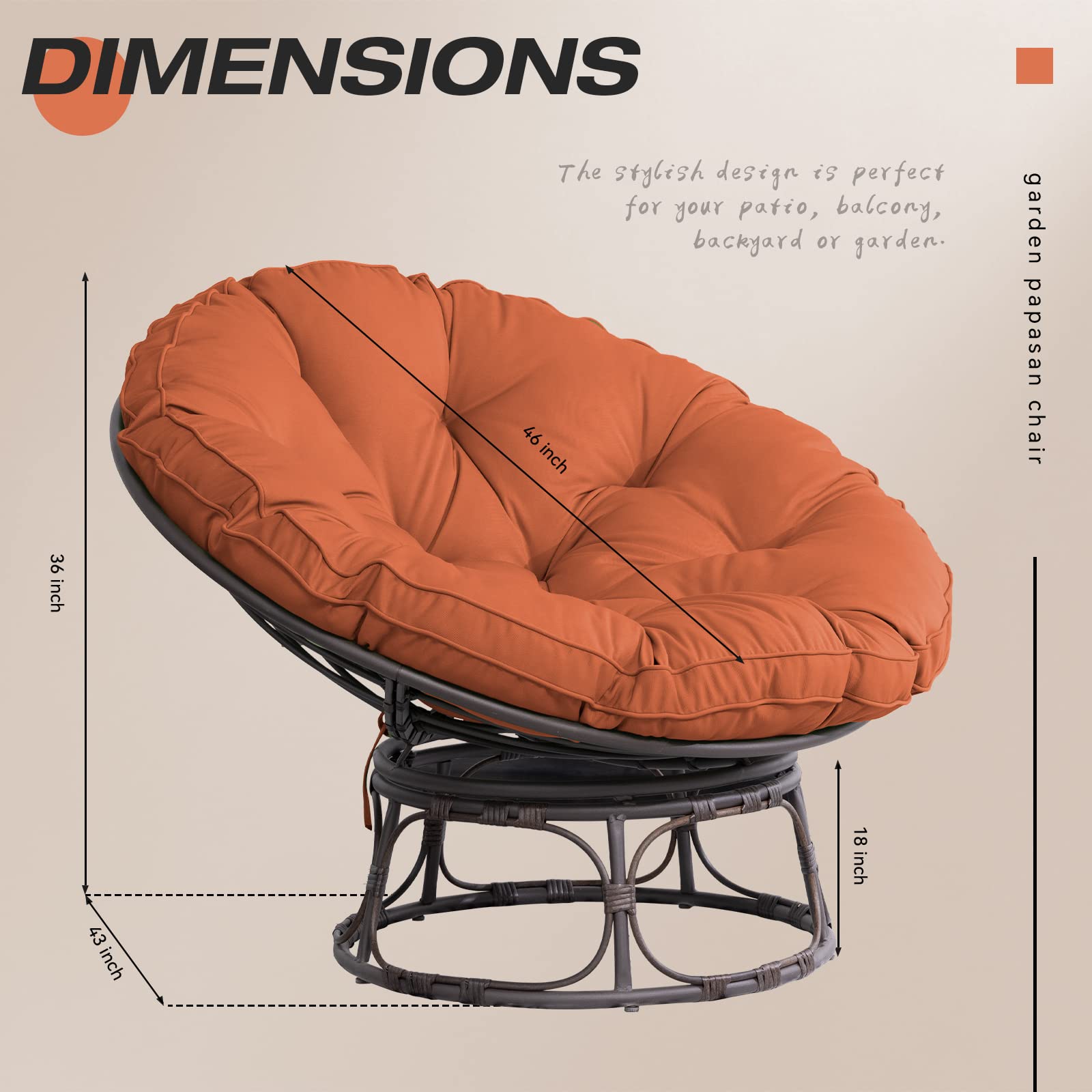 COMFY CUSHIONS: the papasan chair cushion is thickened with 100% polyester foam to provide utmost comfort and the premium polyester... Read more Read more
