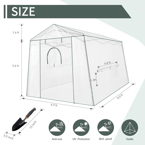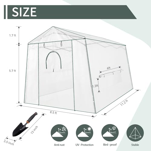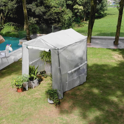 This walk-in greenhouse is designed with roll-up windows featuring mesh, which not only protects plants from unwanted insects but also ensures optimum ventilation within the greenhouse.