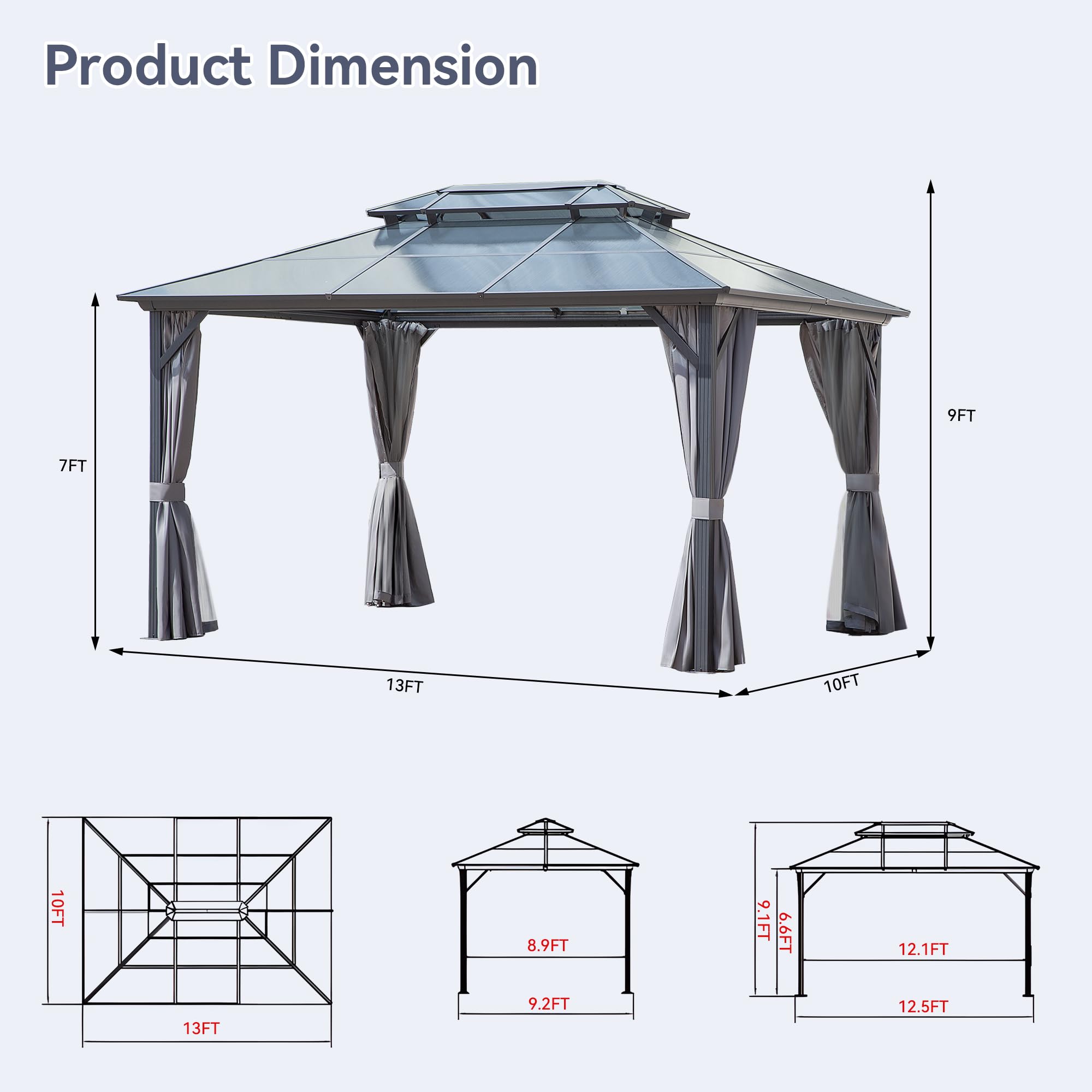 【Durable Double Polycarbonate Roof】Experience the outdoors in all its glory with the hardtop gazebo featuring a robust polycarbonate roof. This... Read more Read more