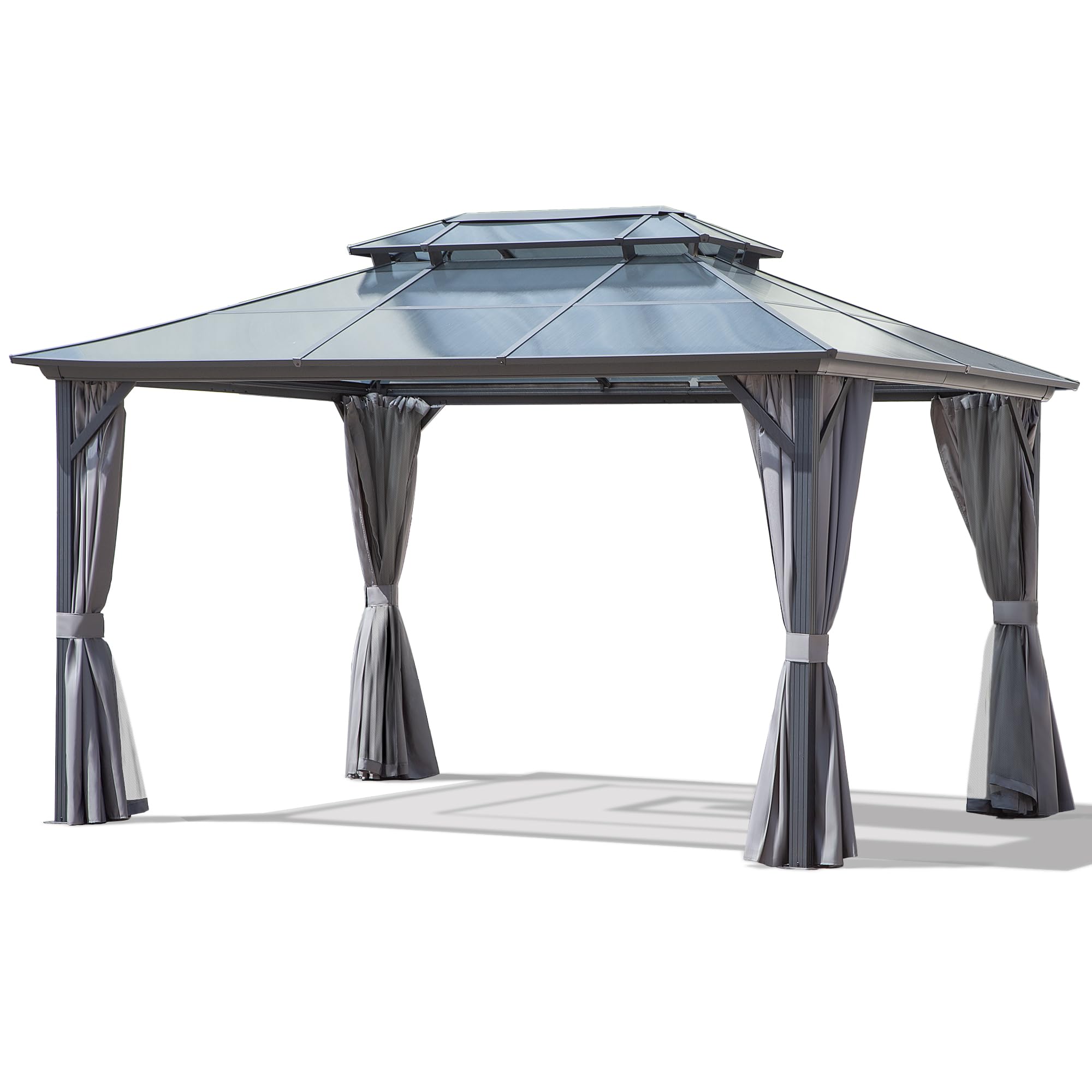 Outdoor Hardtop Gazebo with Double-Tier Polycarbonate Roof