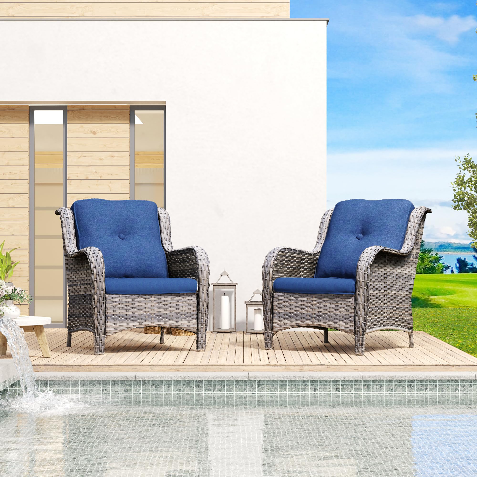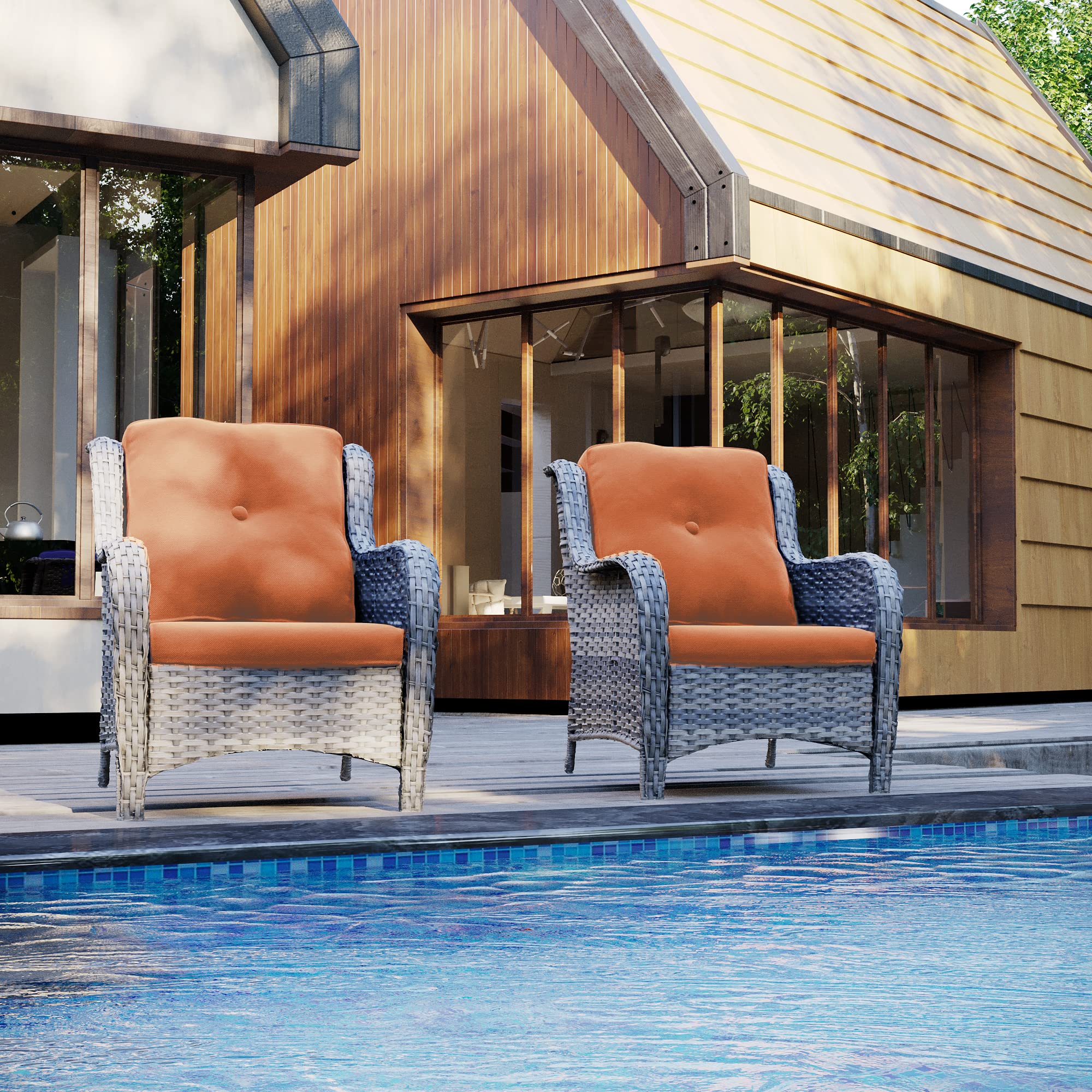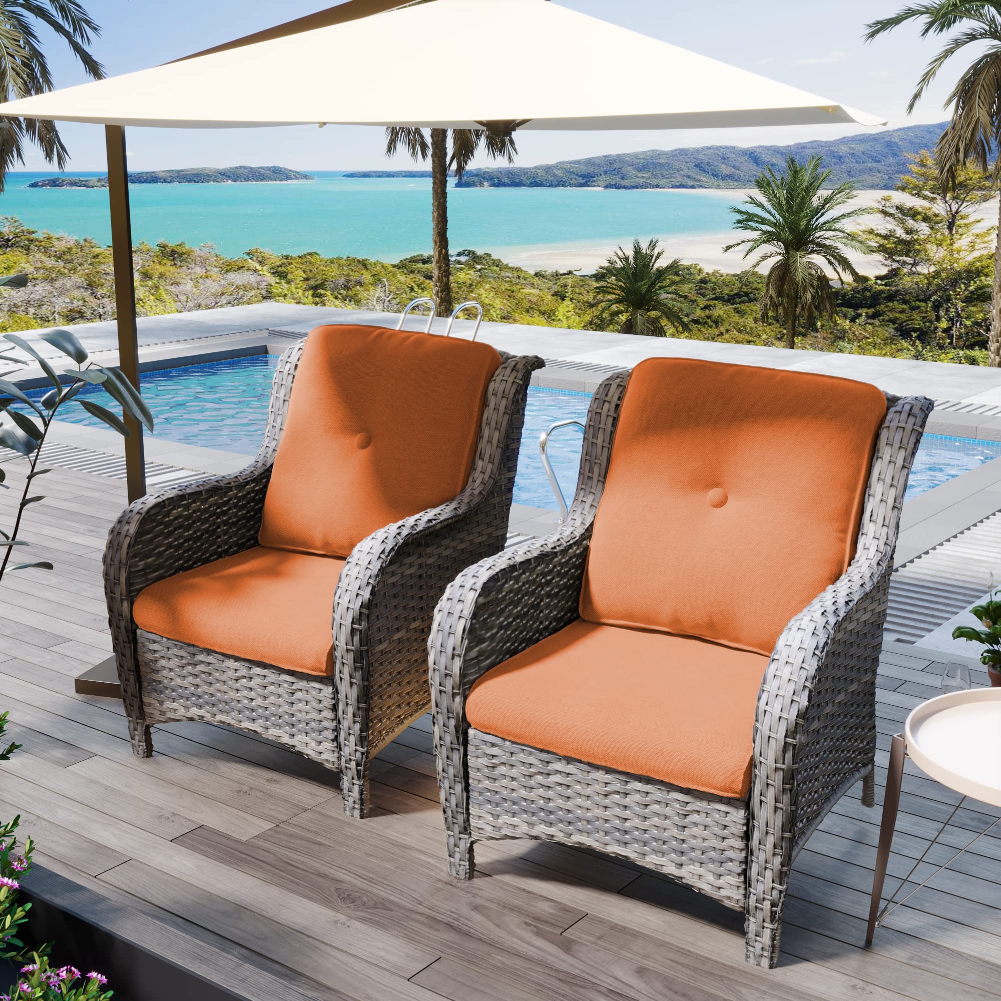 Outdoor Wicker Chair Rattan Patio Dining Chairs Set of 2 PE Wicker Patio Chairs