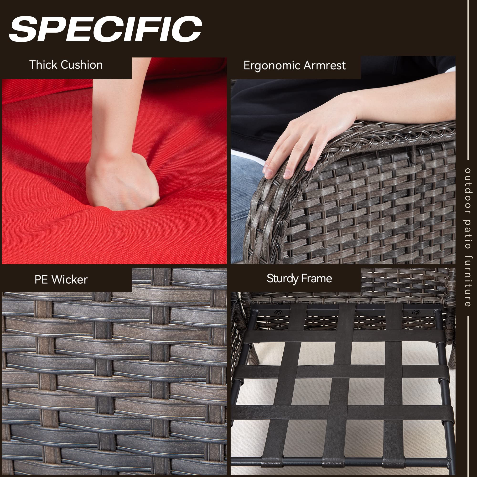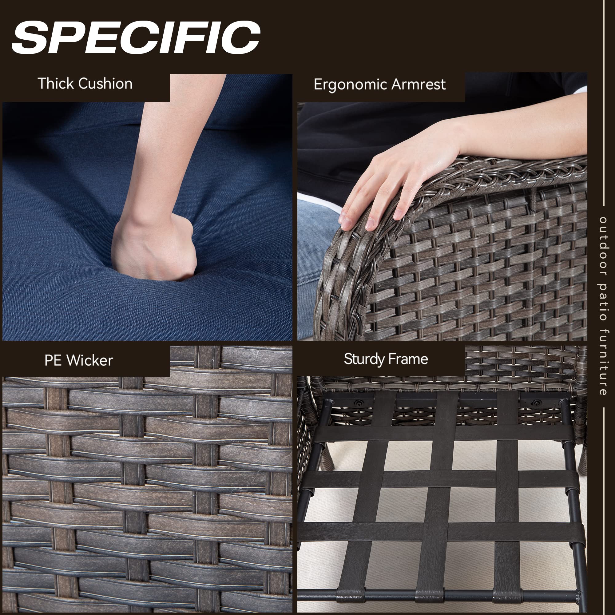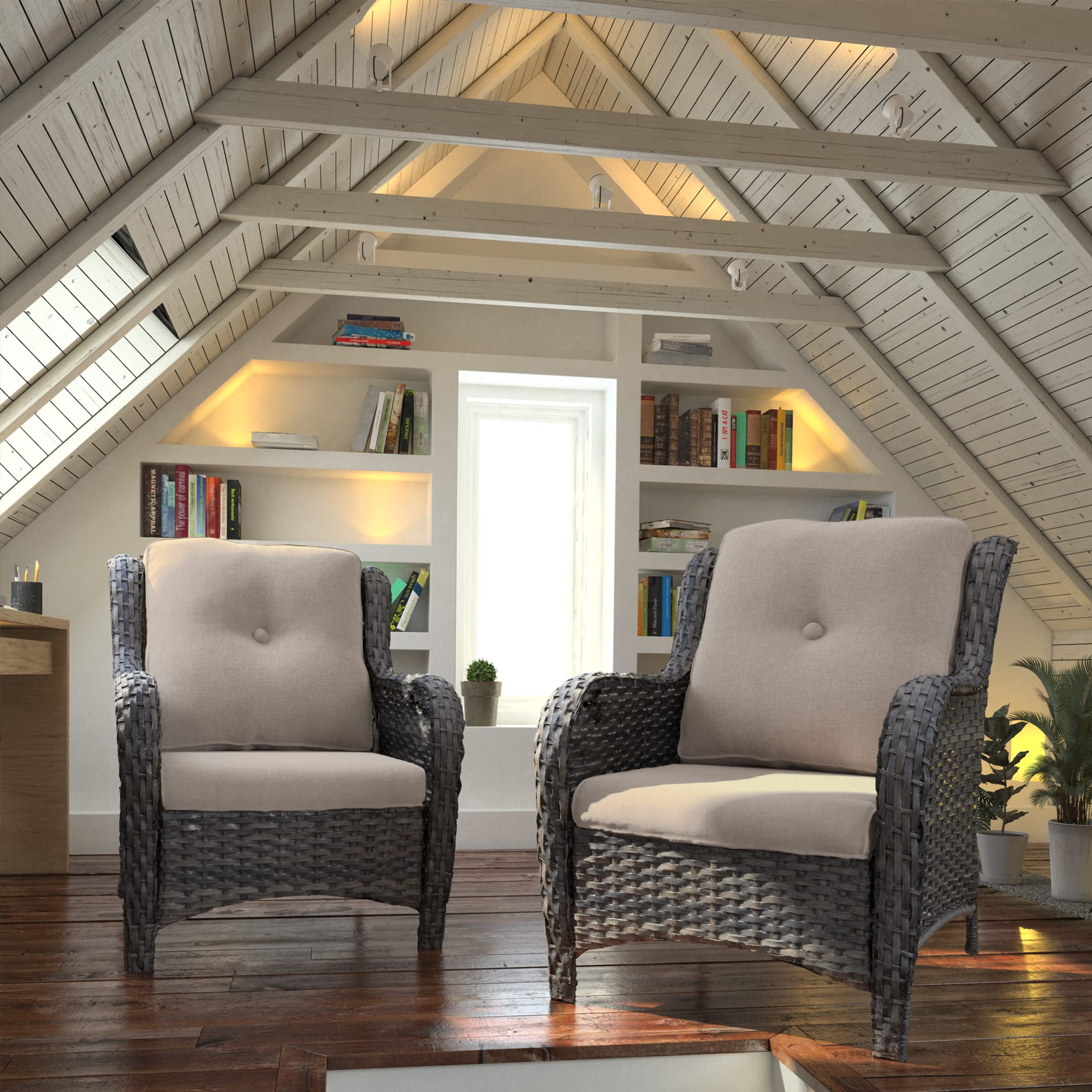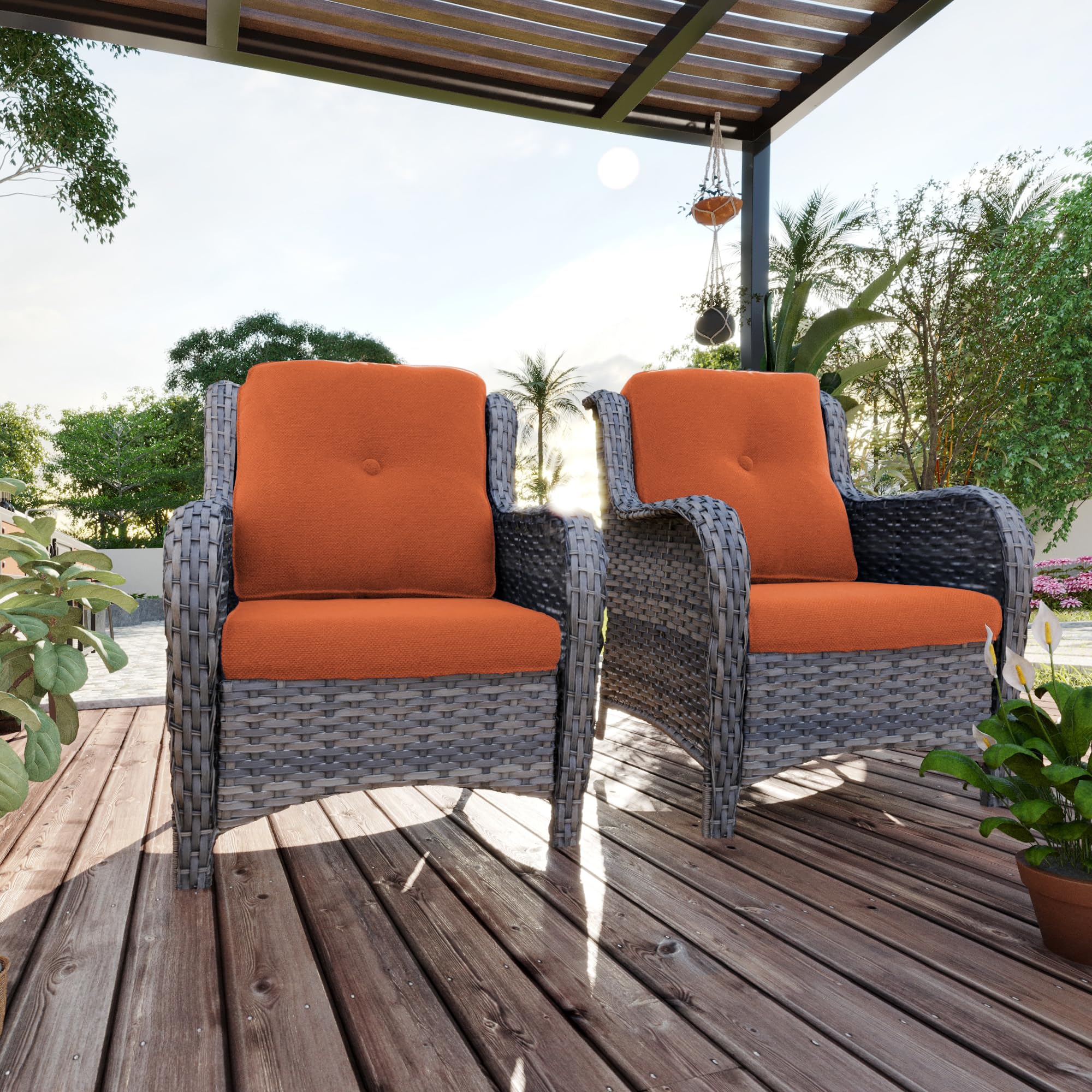 Outdoor Wicker Chair Rattan Patio Dining Chairs Set of 2 PE Wicker Patio Chairs