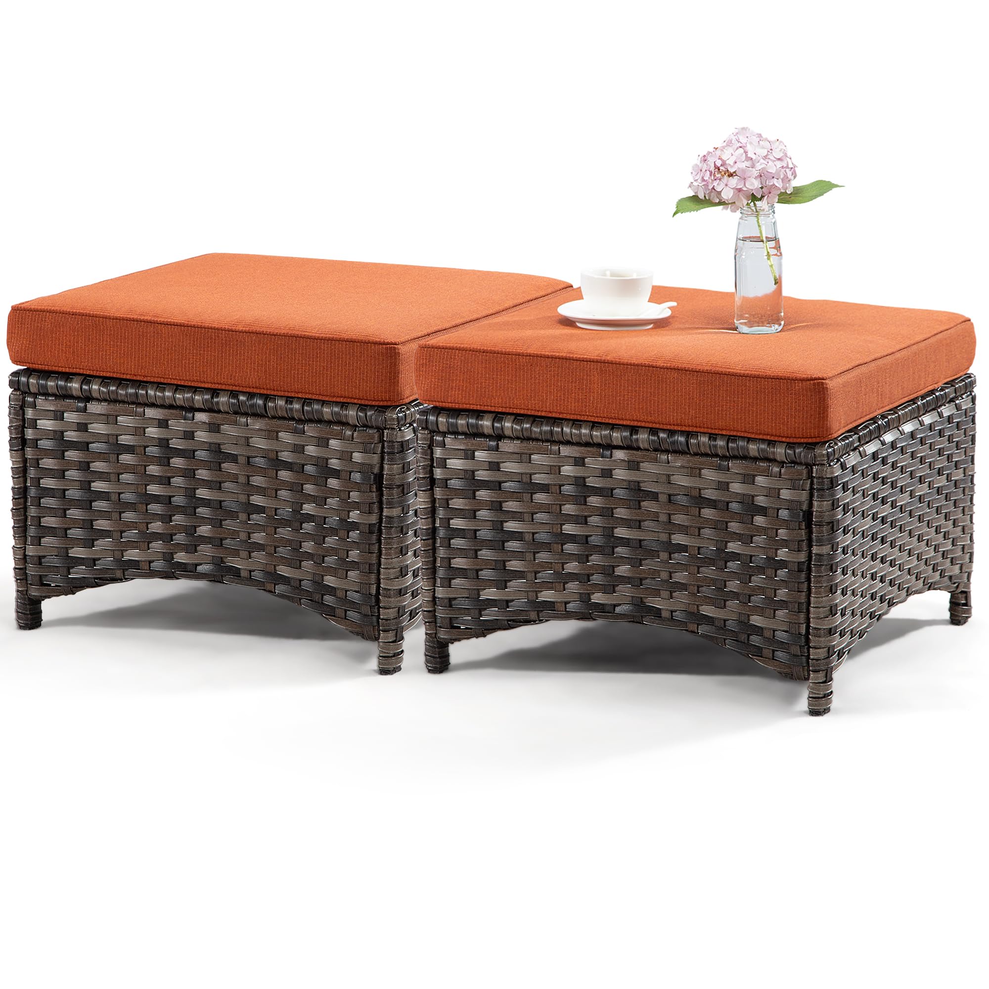 Outdoor Wicker Ottomans for Patio Set of 2