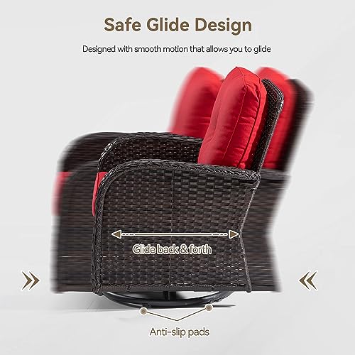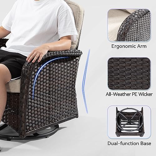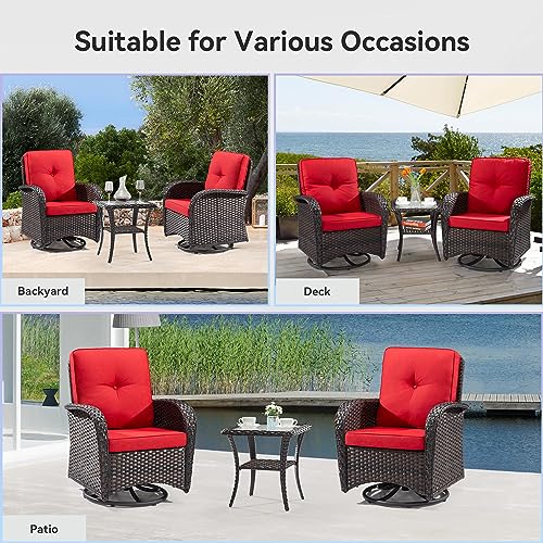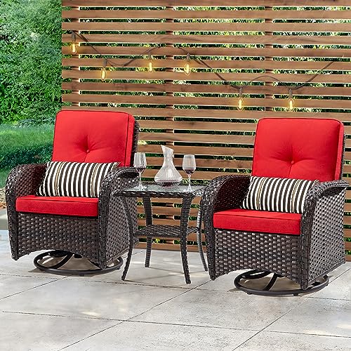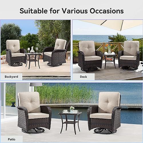 Outdoor Swivel Rocking Chairs Set of 2 with Wicker Side Table